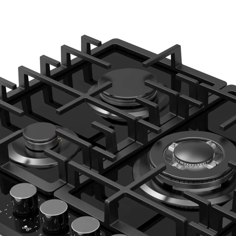 This gas on glass hob offers precise flame control and durable design, enhancing any modern kitchen with both style and high-performance cooking capabilities.