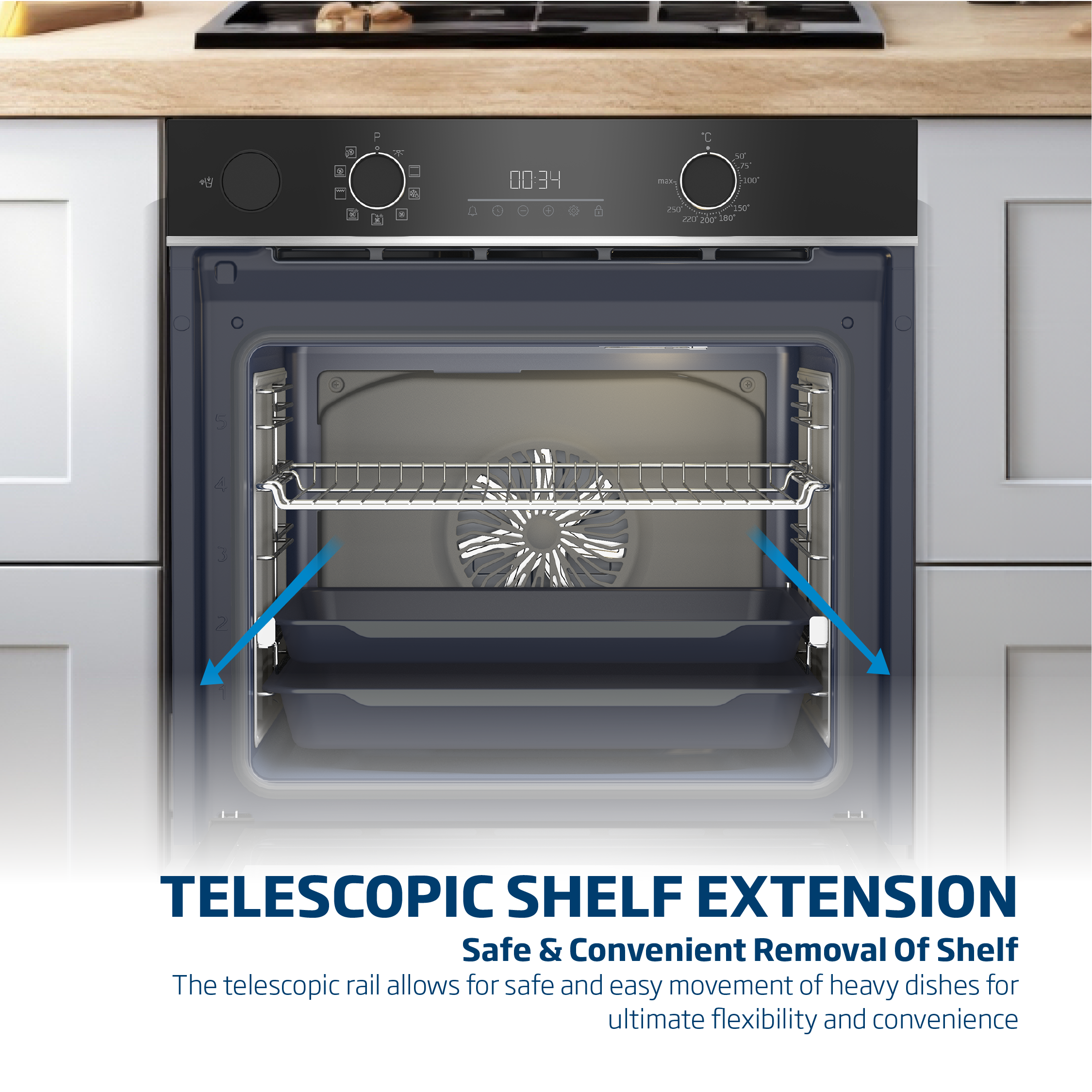 This built-in oven offers steam-assisted cooking, uniform hot air distribution, and telescopic shelf extension for safer, faster, and cleaner baking and roasting. What’s in the Box: 1 x Beko BBIS13300XMSE Oven 1 x Telescopic Shelf 1 x Standard Baking Tray 1 x Manual