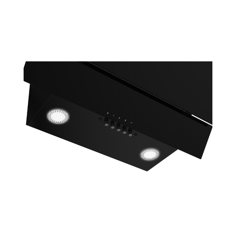 This sleek black inclined hood offers powerful ventilation and smart features to keep your kitchen air clean and fresh