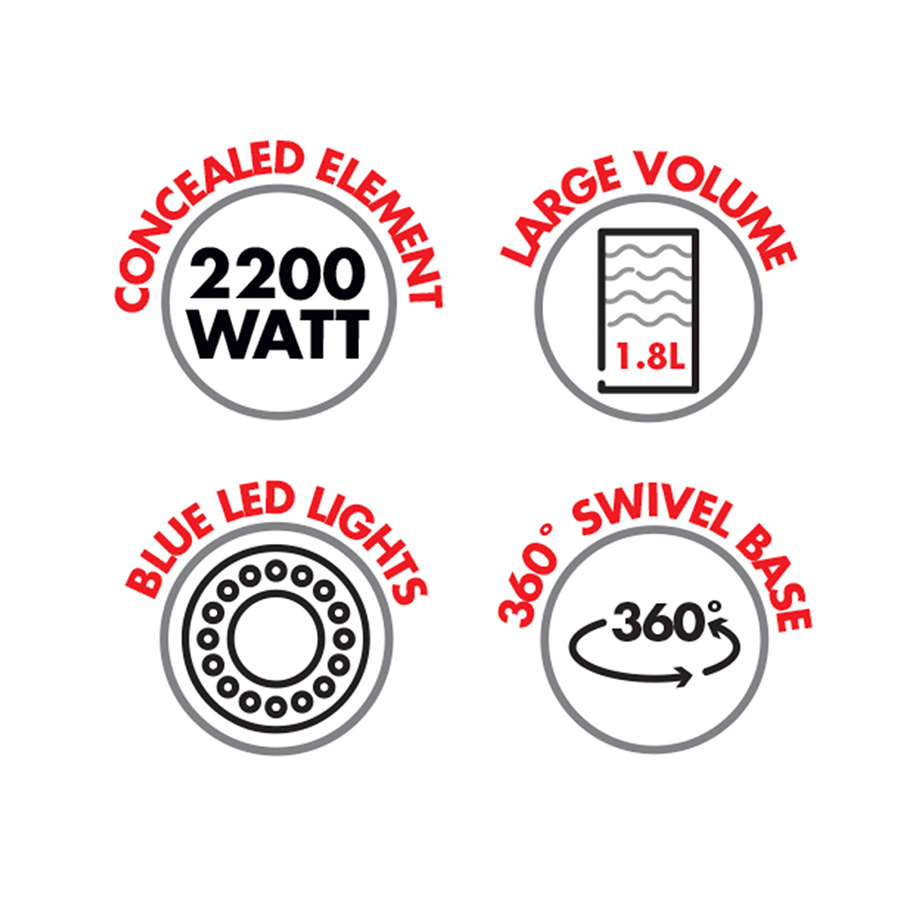 Powerful 2200W concealed heat element