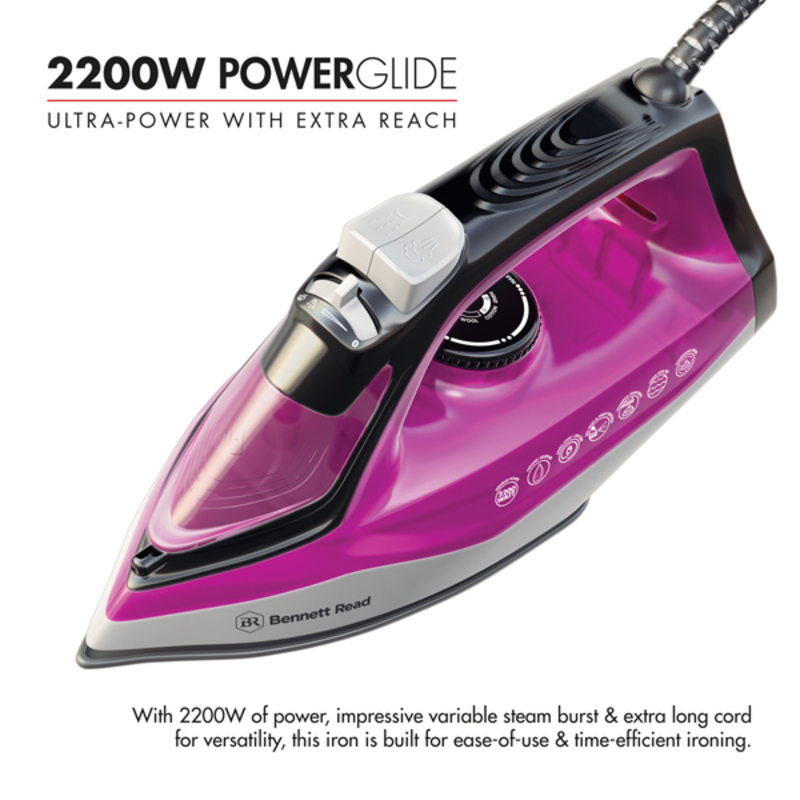 The Bennett Read 2200W Powerglide Steam Iron comes with a standard 1-year warranty. This warranty can be extended to a full 2 years upon online registration via the official brand website at www.bennettread.co.za/warranty. Details regarding specific coverage, exclusions, and the full claims process are not provided in the available product information.