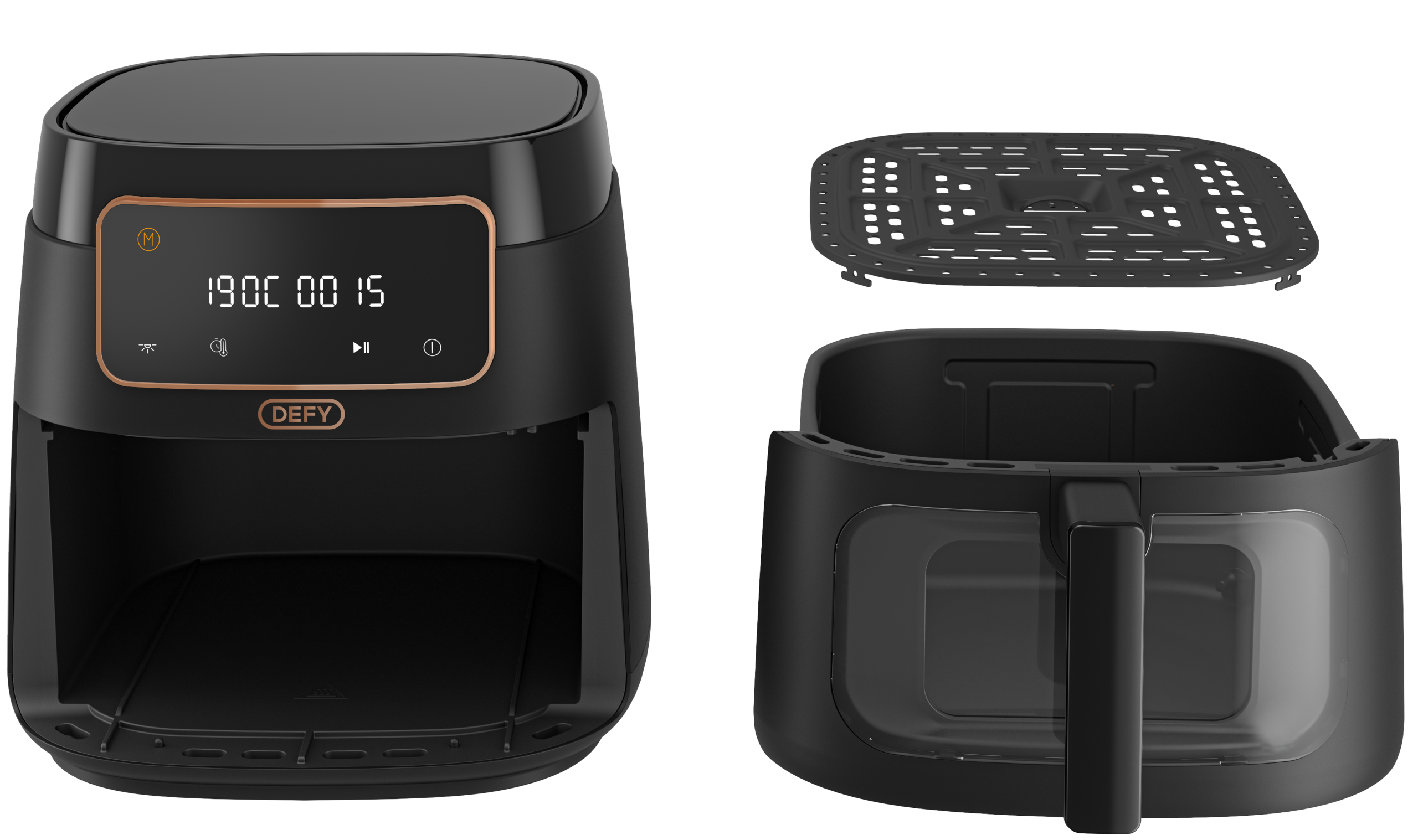 The DAF 3376 DB AirFryer offers versatile cooking with adjustable heat settings and a built-in timer to ensure perfect results every time. Its removable basket and tank make cleaning simple, while the non-stick coated inner pot enhances durability and prevents food from sticking. The LCD screen provides easy control and monitoring, complemented by overheat protection for safe operation. Ideal for healthy frying and convenient meal preparation.Functions & Features: