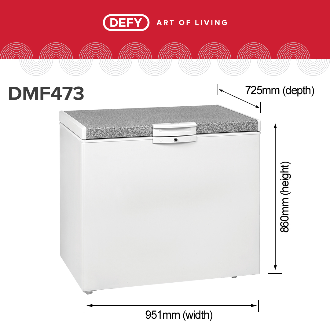 The Defy DMF473 Chest Freezer offers a generous 254L net capacity and energy-efficient performance in a space-saving design. With static cooling and multimode flexibility, it adapts easily to your refrigeration or freezing needs.