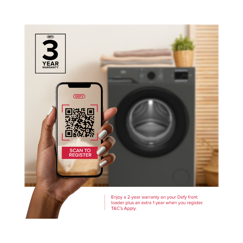 Built to handle the demands of a busy household, this Defy front-load washer offers an 8 kg drum capacity and a modern Manhattan Grey finish to complement contemporary laundry spaces. With its streamlined digital display, robust build and intuitive controls, it enables you to manage everyday washing easily—from cottons and synthetics to delicates and quick-wash loads—while maintaining fabric care and energy efficiency.