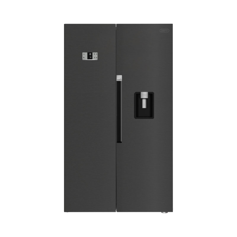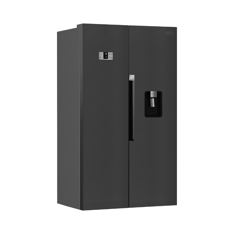 Designed to meet the needs of busy kitchens, the DEFY Side by Side 614 L Eco WD Fridge features generous storage with a well-organized fridge and freezer layout, No Frost cooling to eliminate manual defrosting, and easy-to-use functions such as Eco Mode and Holiday Mode for energy management. A manual water dispenser and icebox provide everyday convenience, while LED lighting and antibacterial odour filtration help keep contents visible and fresh. Finished in sleek inox, this fridge combines practical performance with contemporary design appeal. Key Features: A+ energy rating for efficient electricity use. No Frost cooling with Eco and Holiday Modes. Manual water dispenser and LED display for everyday convenience.