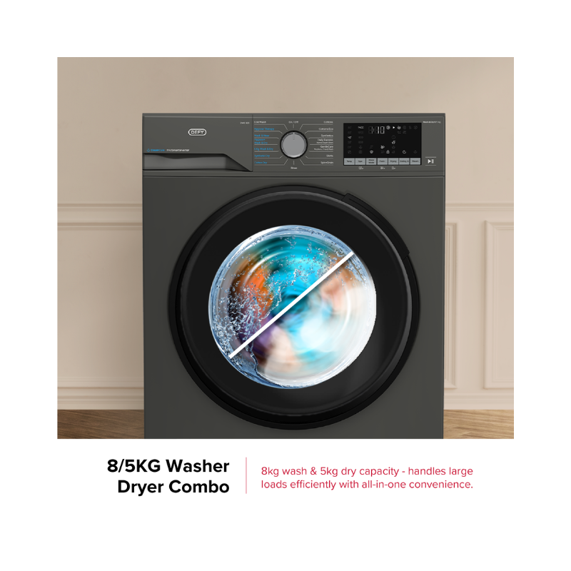 Key Features: SteamCure™ technology to refresh and sanitize fabrics. 15-programme selection including wash & dry combinations. Compact footprint yet generous 8 kg wash / 5 kg dry capacities.