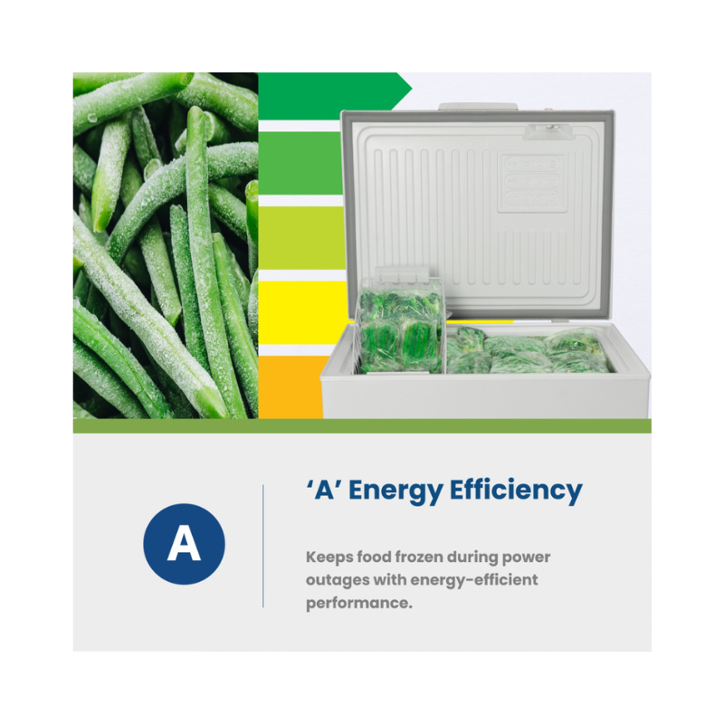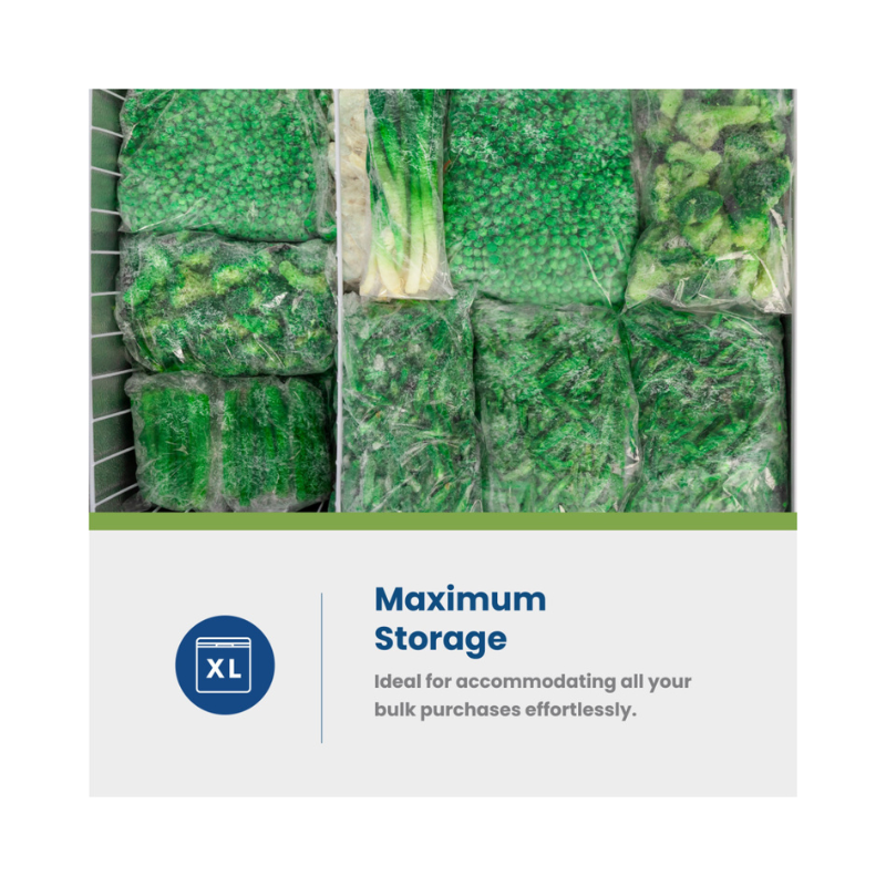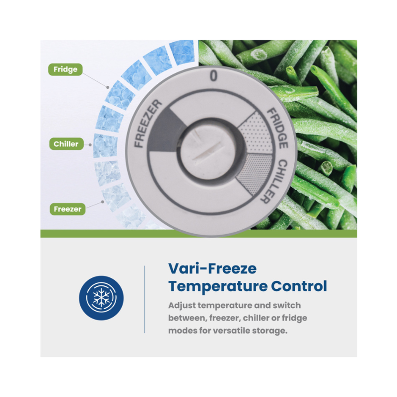 Key Features: It has real 203 L nett capacity for large storage; long-lasting freeze performance with up to 38 hours rising time; and a food-safe, scratch-resistant worktop with vari-freeze control.