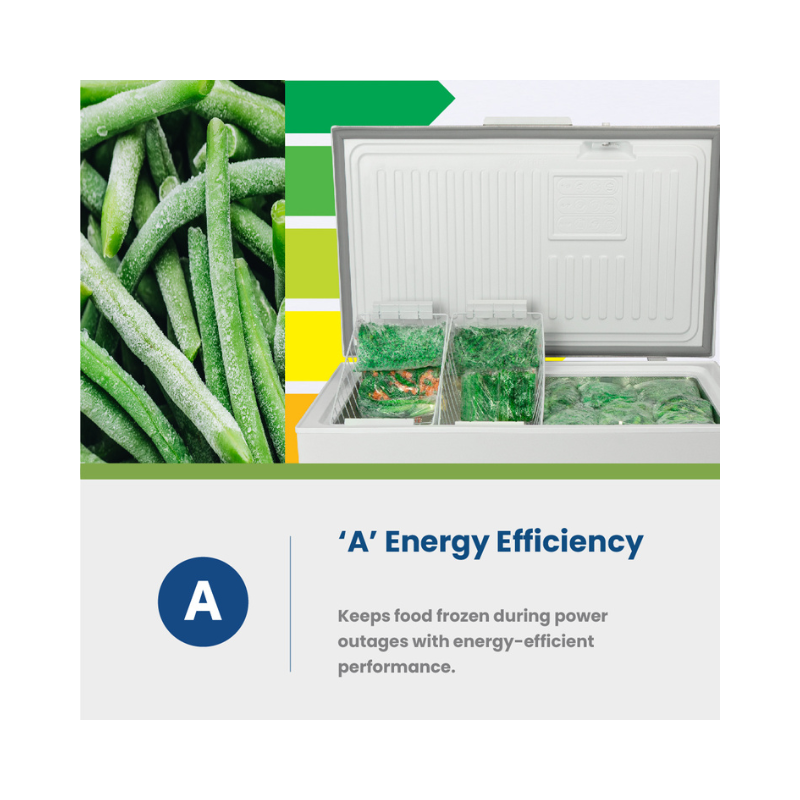 • Durable and scratch-resistant food-safe worktop with thick lid for long-lasting freeze retention (up to 40 hours during power loss).