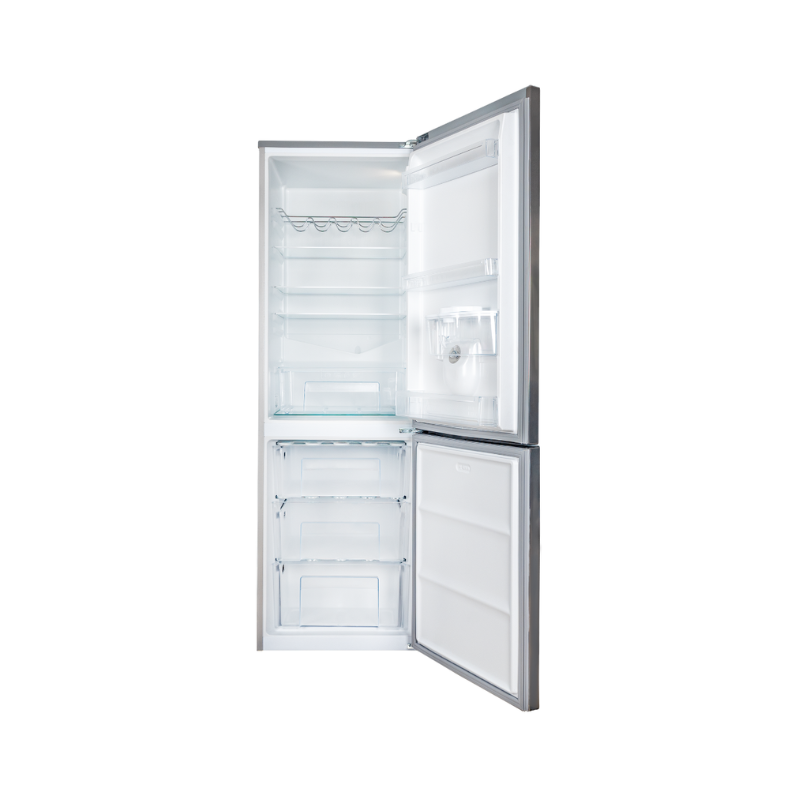 Designed for households that need generous storage and smart features, the KIC KBF639/2 ME metallic bottom freezer delivers a 344-litre nett capacity (231 L fridge / 113 L freezer) with an “A” energy rating. Its layout includes toughened glass shelves, a crisper drawer for fruits and vegetables, adjustable balconies in the fridge door for flexible bottle storage, and pull-out freezer baskets. The inclusion of a water dispenser (3 L tank) further enhances everyday usability. Build quality includes features like direct cooling, semi-auto defrost and a bacteria-stop seal, making this unit both practical and hygienic in design.