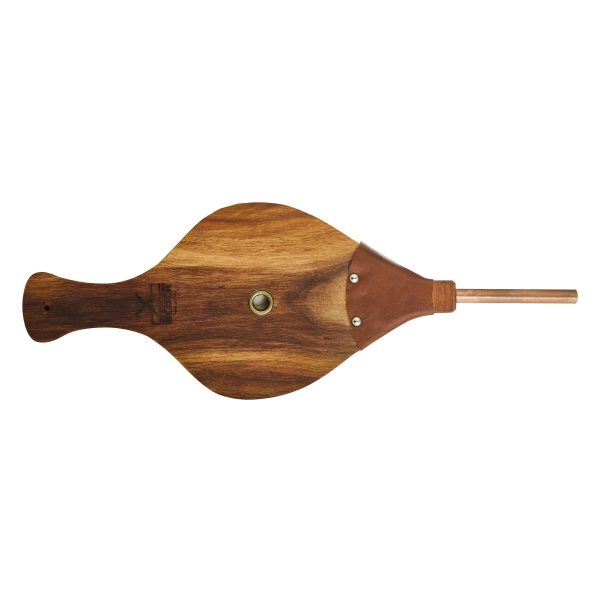 The design is for small intakes of air that expels in large outflows – ideal for delivering oxygen to a dying fire. A couple of actions from a 30cm distance is all that is needed for the right amount of oxygen to bring your fire back to life easily, without fuss. The wooden bellow is crafted with the following: