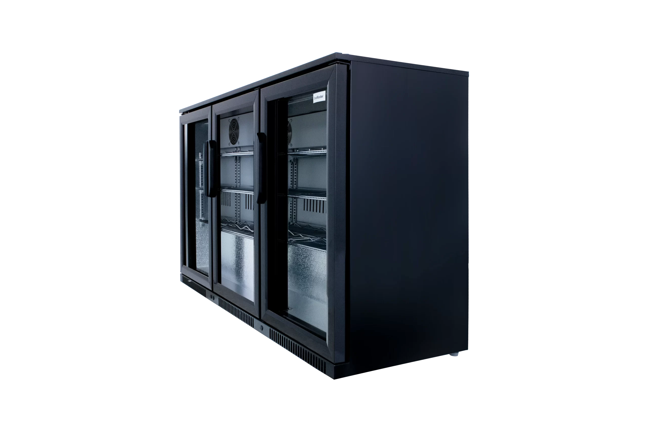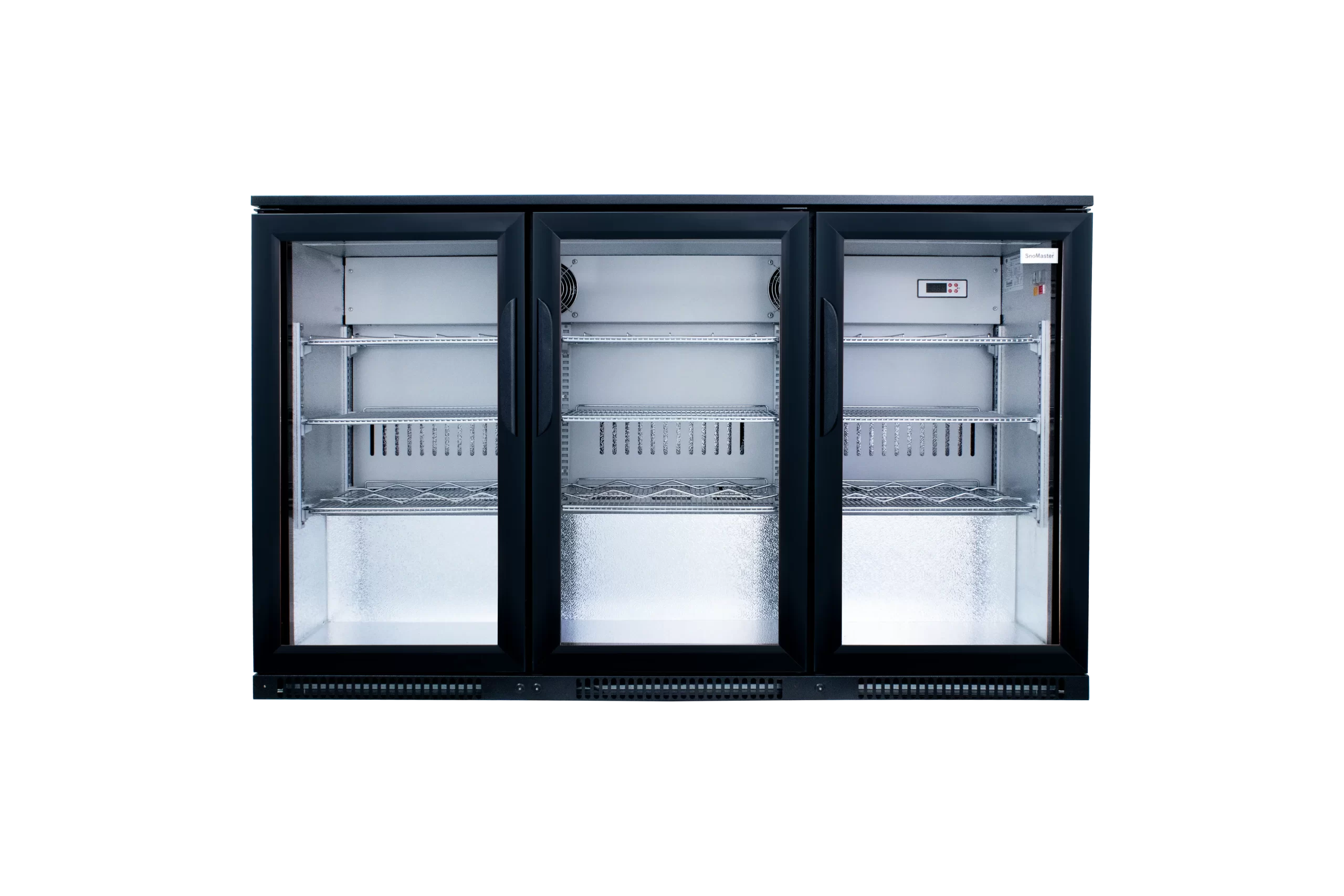 Upgrade your cooling game with the SD-300’s magnificent capacity. This sleek black tri-door marvel comfortably houses diverse assortments of beverages, ready to serve your bustling commercial space or cater to an extravagant home party. Equipped with our superior condenser technology, it promises unswerving cooling performance even during peak demand. Unyielding in service, unquestionable in style.